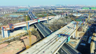 宁淮城际铁路跨沪陕高速连续梁合龙