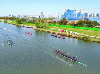 届中国大学生赛艇锦标赛在南京江北新区七里河水上运动基地开赛。近
